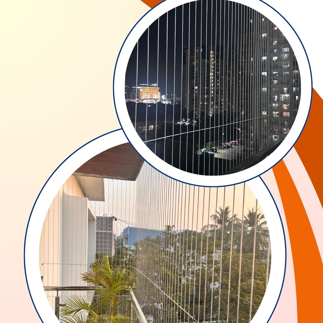 Niharika Invisible grills are a smart and stylish safety solution designed to protect your loved ones without blocking your beautiful view. Made with high-tensile stainless steel cables coated with protective nylon, these grills provide strong security while maintaining a sleek and elegant appearance.